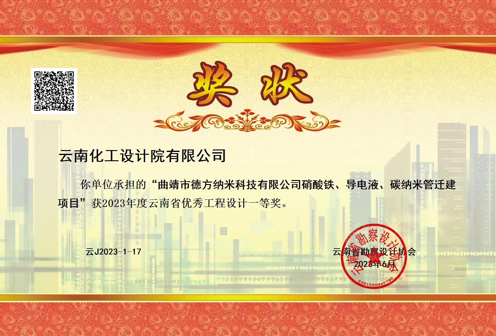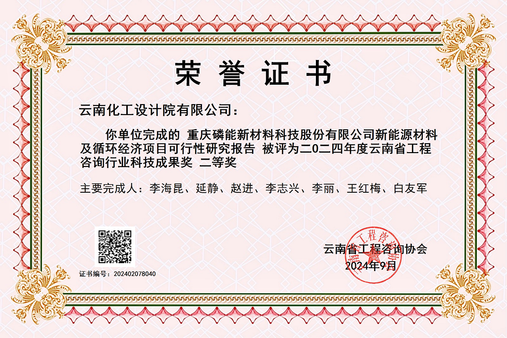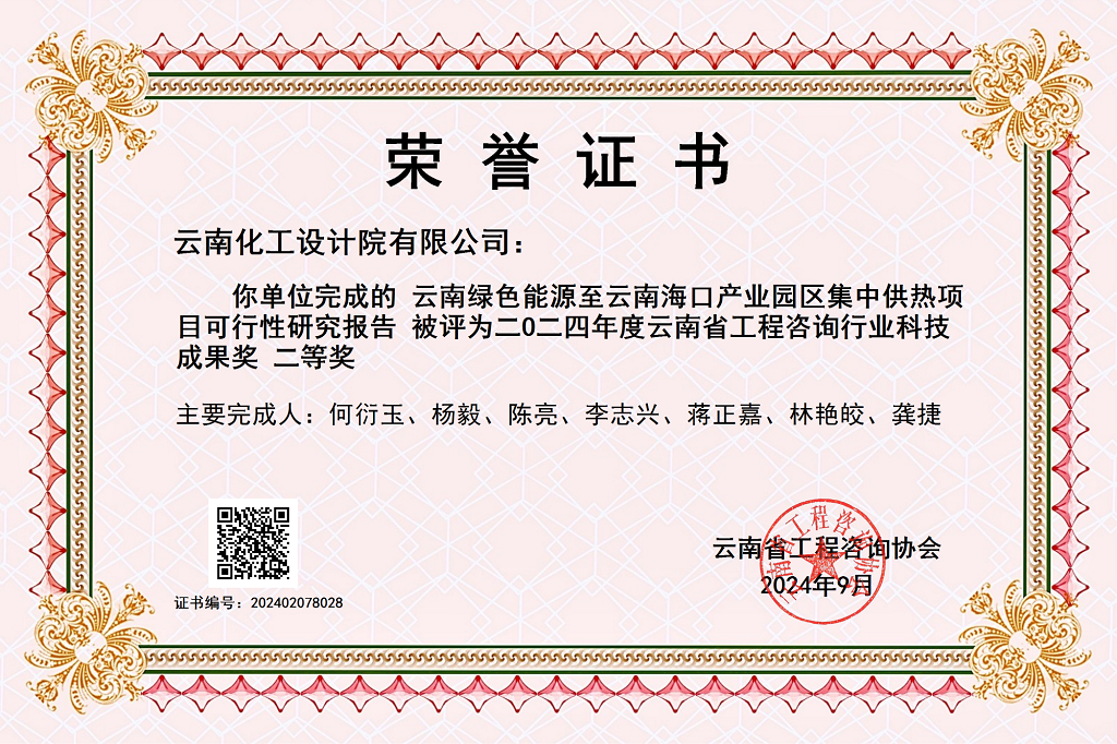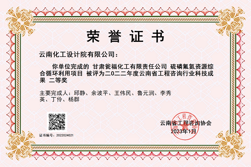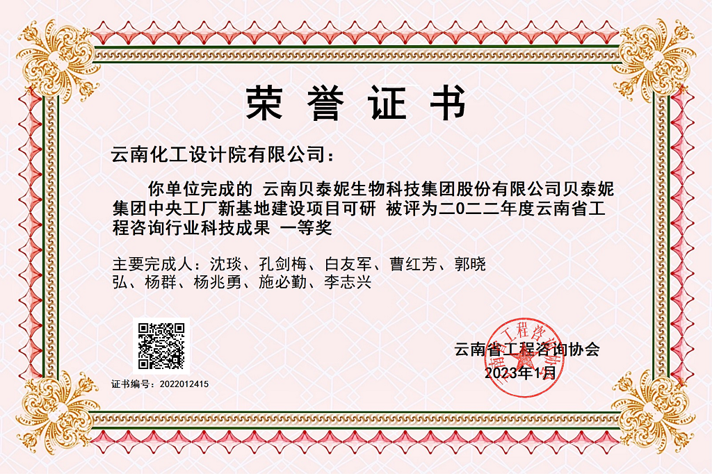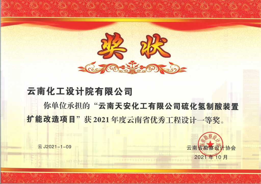 頒發(fā)機構:云南省勘察設計協(xié)會
