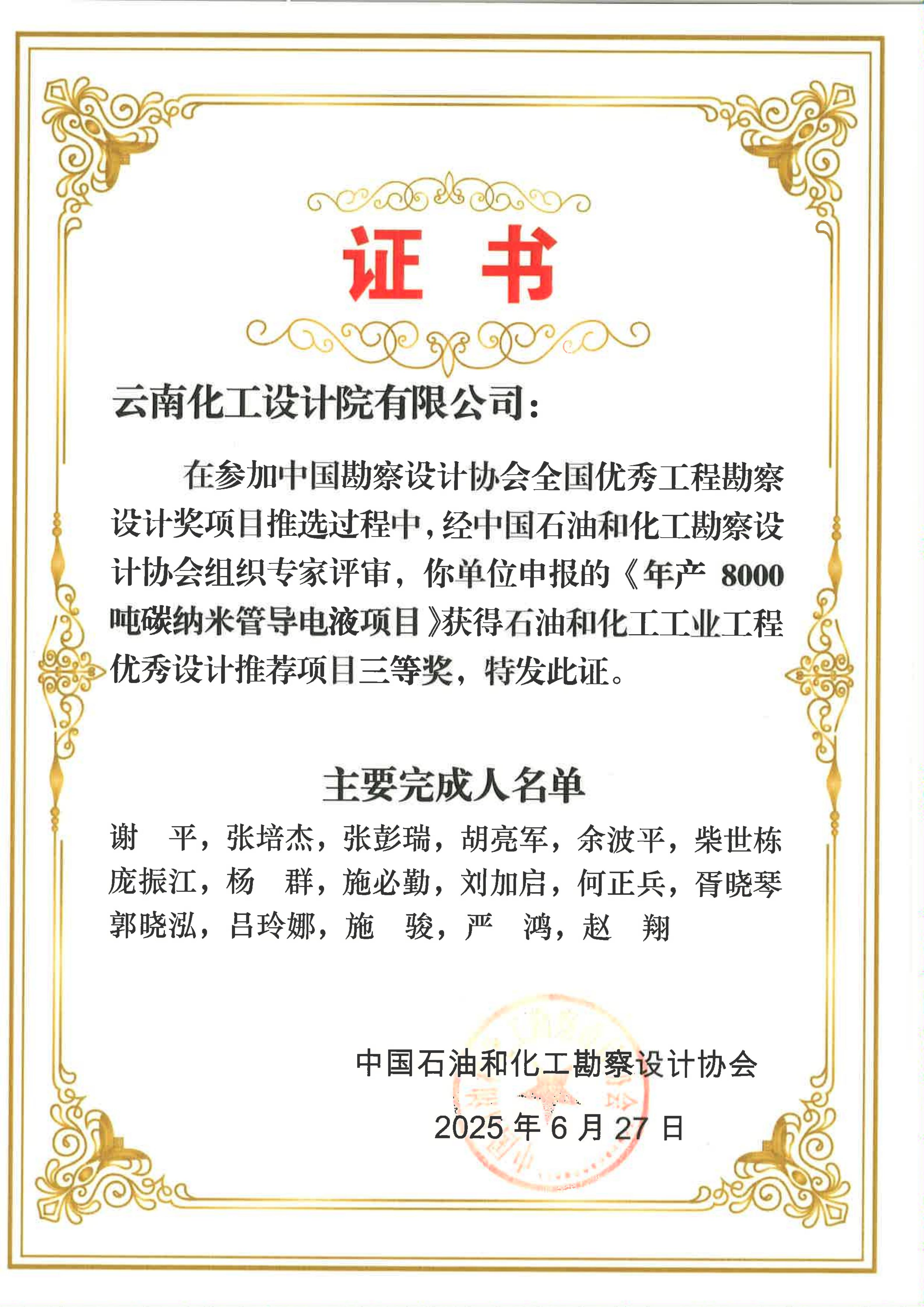 頒發(fā)機構:中國石油和化工勘察設計協(xié)會